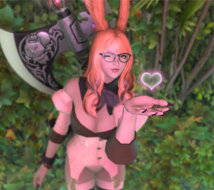 Greetings, I'm Queue, a queer polyamorous bun.I am an newly opened cafe owner.I am fairly chill and relaxed with most people, but once I get comfortable I can be more open and goofy.